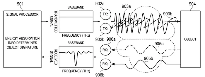 該專利的具體用途含糊不清,細(xì)節(jié)表明“發(fā)送/接收太赫茲EM波的電子設(shè)備正在變化,和/或在環(huán)境中反映太赫茲波的一個(gè)或多個(gè)物體的位置和/或方向正在移動。 !