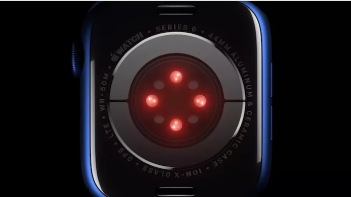 Apple Watch 6上的Apple血氧傳感器圖像。這是Apple過去創(chuàng)建的醫(yī)療專用傳感器的示例。圖片由Apple提供