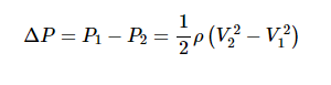 其中P是流體壓力,ρ是流體的密度,V表示流體速度,g是由于重力引起的加速度。帶下標(biāo)1和2的變量 分別對應(yīng)于橫截面1和2處的流體參數(shù)。