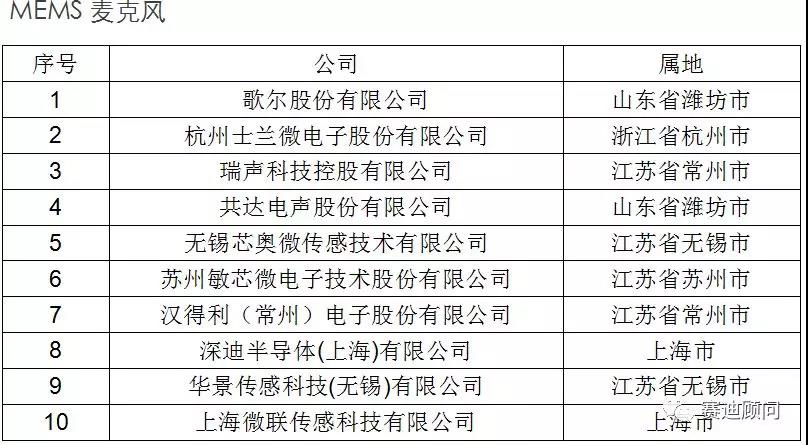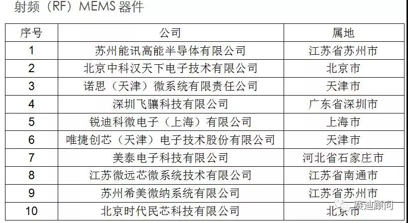 國(guó)內(nèi)MEMS細(xì)分領(lǐng)域優(yōu)秀企業(yè)(排名不分先后)