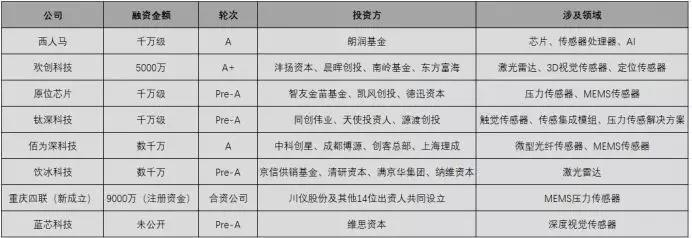 根據(jù)2019年11月和12月的不完全統(tǒng)計(jì)數(shù)據(jù)來(lái)看,國(guó)內(nèi)資本對(duì)這些發(fā)展中的傳感器企業(yè)較為關(guān)注,特別是擁有自主研發(fā)的核心技術(shù)、領(lǐng)域相對(duì)較為垂直的企業(yè),例如鈦深科技的壓力傳感器、佰為深科技的微型光纖傳感器等。