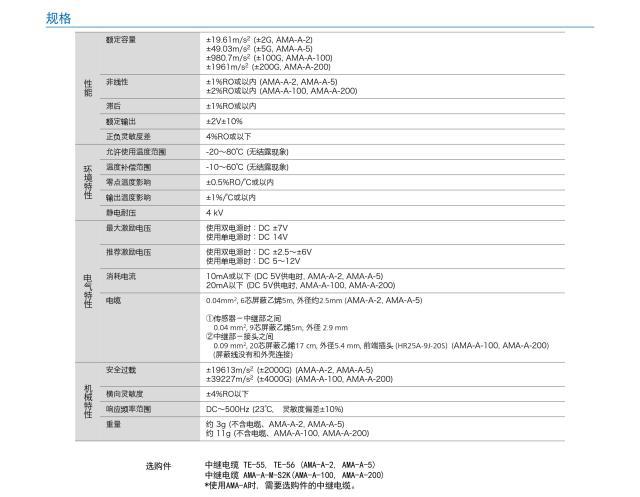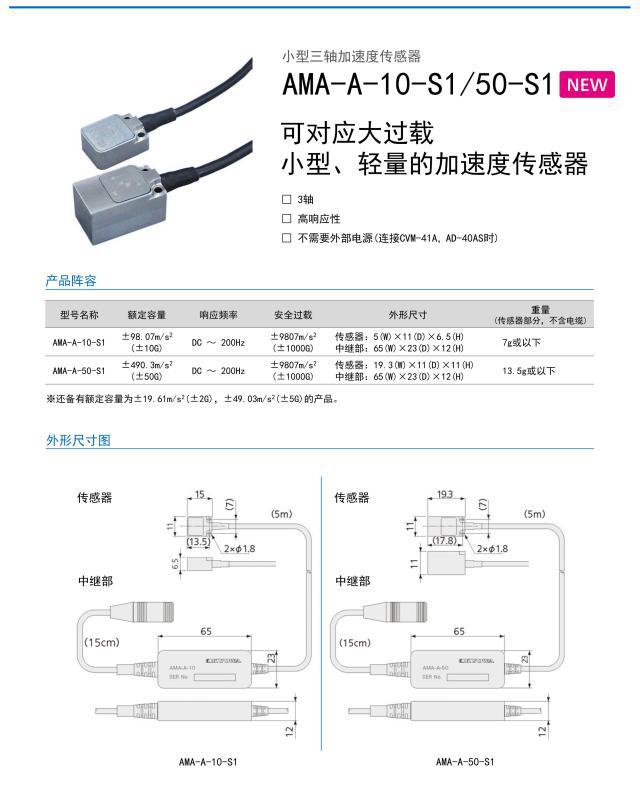 日本kyowa AMA-A適用于較大過載的小型輕量的加速度傳感器.