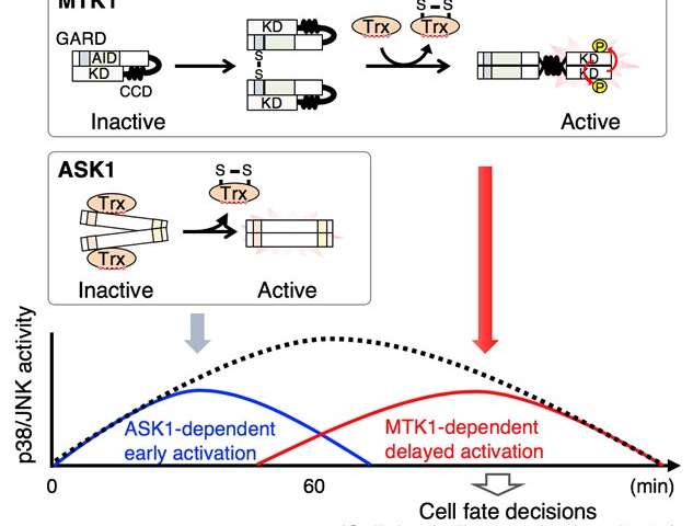 一個研究小組在醫(yī)學科學的東京日本大學研究院,由Mutsuhiro Takekawa教授為首,已發(fā)現一種新的機制,是引起通過檢測細胞反應的氧化應激在人體內。MTK1 SAPKKK被認為是一種新型的人類氧化應激傳感器,可以感應體內過量的活性氧并將該信息傳遞給細胞,從而導致細胞死亡和炎性細胞因子的產生。這項研究的結果發(fā)表在2020年6月24日的《科學進展》上。