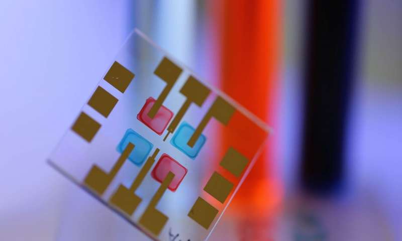 通過使用半導體墨水進行噴墨打印而制成的顏色選擇有機光傳感器。圖片提供:KIT的Noah Strobel