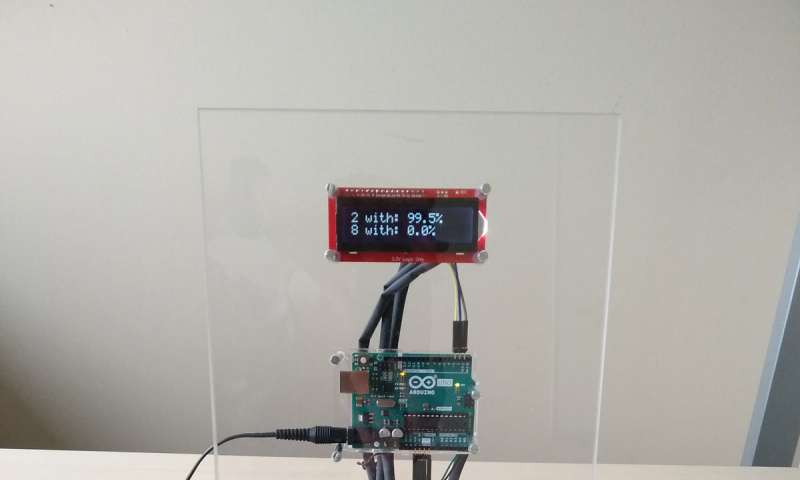 AIfES演示器,用于手寫識別。所有功能都已集成在Arduino UNO上,它可以讀取觸摸板的傳感器值,執(zhí)行數(shù)字識別并將結(jié)果輸出到顯示屏。圖片來源:Fraunhofer-Gesellschaft