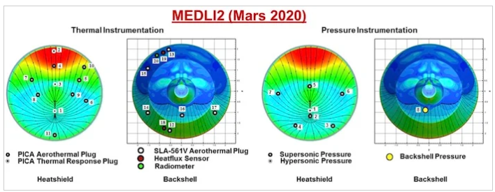 Perseverance隔熱板上的一套傳感器稱為MEDLI2,旨在測量流動站的進入,下降和著陸(EDL),以更好地協(xié)助未來的任務(wù)。