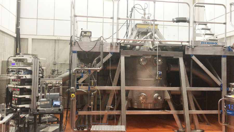 圖片:Paragraf – 圖像顯示(右側(cè))用于測(cè)試 GHS-C 的 37 T 磁鐵,其中插入了低溫恒溫器和可變溫度以及測(cè)量電子設(shè)備和氣體處理系統(tǒng)(左側(cè))
