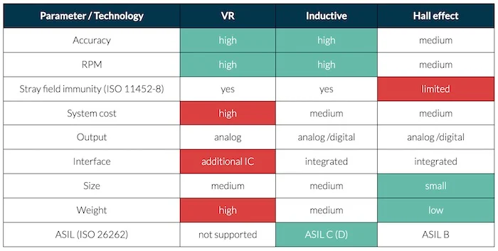 旋轉(zhuǎn)變壓器技術(shù)的比較。圖片由Melexis 提供