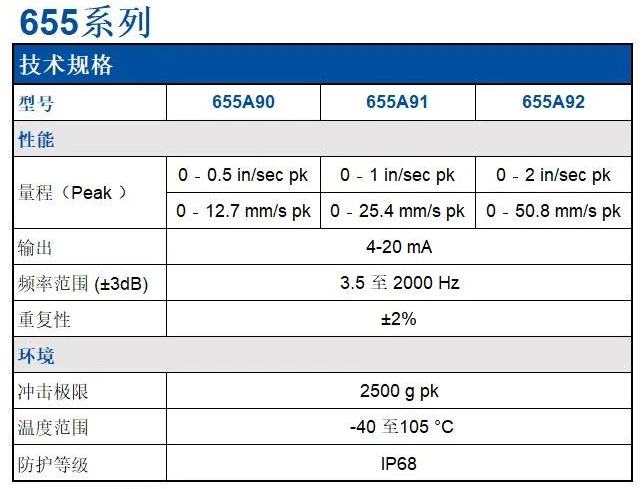 2023年2月,紐約州Depew市-PCB公司旗下IMI工業(yè)傳感器部門宣布正式發(fā)布新型號(hào)655/656系列低成本4-20mA振動(dòng)速度變送器。該型號(hào)集成了壓電振動(dòng)傳感器和4-20mA變送器,使用特色M12 4針接頭,655/656系列的設(shè)計(jì)便于和現(xiàn)有的工業(yè)監(jiān)測(cè)系統(tǒng)集成。該變送器內(nèi)置的壓電元件提高了測(cè)試精度,而且頻率響應(yīng)擴(kuò)大為3.5Hz到2kHz。