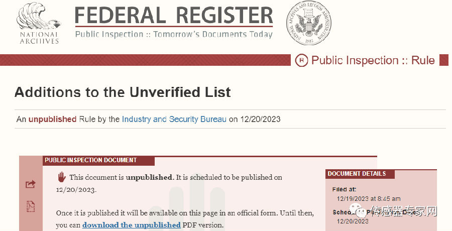 今日(12月20日),美國(guó)商務(wù)部又將13家中國(guó)實(shí)體列入“未經(jīng)核實(shí)清單”(UVL清單),本次被“拉黑”的實(shí)體大部分為電子類企業(yè),值得一提的是包含了一家國(guó)產(chǎn)傳感器公司。