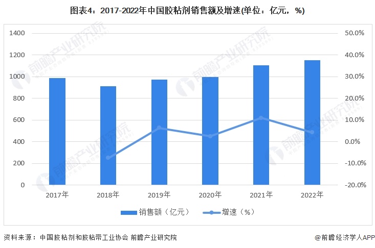 粘膠劑銷售額同比增長(zhǎng)4%以上