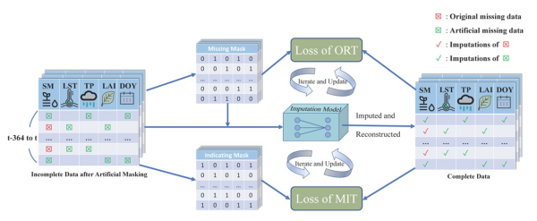 地表土壤水分監(jiān)測對氣象預報、水文研究和氣候變化分析等至關重要。然而,由于現(xiàn)有的微波傳感器觀測能力以及衛(wèi)星軌道覆蓋和植被覆蓋等因素的影響,微波遙感土壤水分產(chǎn)品存在大面積的空值區(qū)域,限制了此類產(chǎn)品的應用。為了解決這一問題,中國科學院成都山地災害與環(huán)境研究所研究員趙偉團隊提出了基于深度學習模型的分層數(shù)據(jù)重建方法。這一方法填補了歐洲航天局(ESA)氣候變化倡議(CCI)土壤水分產(chǎn)品的空間空白。
