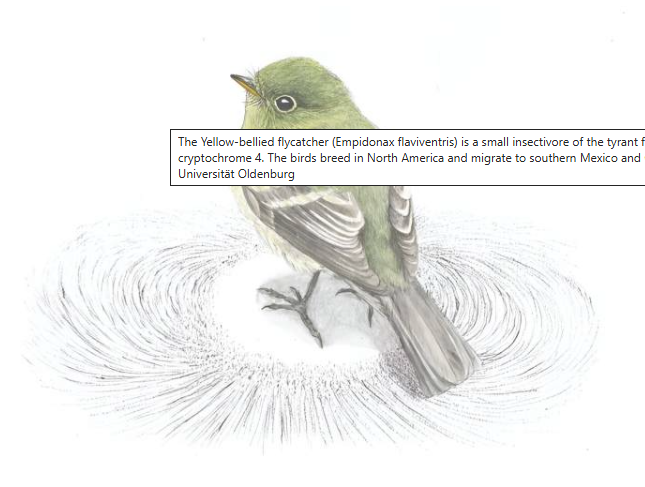 黃腹鹟(Empidonax flaviventris)是一種小型食蟲性捕蠅動物,屬于霸鹟科,無法產(chǎn)生蛋白質隱花色素4。這些鳥類在北美繁殖,冬季遷徙至墨西哥南部和中美洲。圖片來源:卡爾·馮·奧西茨基-奧爾登堡大學