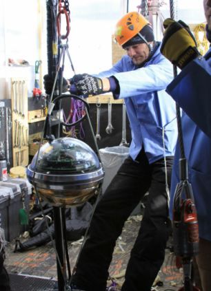 斯德哥爾摩大學(xué)的馬提亞斯·丹寧格爾正在協(xié)助安裝最后的電子光學(xué)組件冰立方中微子天文臺的建設(shè)工作已經(jīng)完成