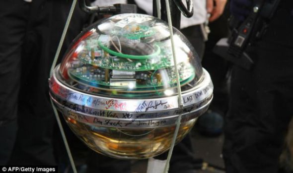 人們準(zhǔn)備安裝最后的電子光學(xué)組件,它上面有全隊所有成員的簽名。