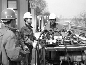 蘭州中山橋維修加固工程于去年11月中旬啟動(dòng),并按照“修舊如舊”的原則,進(jìn)行保護(hù)性的維修加固,全面提升中山橋的防汛、抗震能力,確保文物的安全。施工單位表示,中山橋的維修加固將嚴(yán)格按照ISO9001標(biāo)準(zhǔn)執(zhí)行,遵照項(xiàng)目部的質(zhì)量方針:技術(shù)先進(jìn)、管理科學(xué)、精心組織,信守合同,確保工程質(zhì)量達(dá)到設(shè)施及規(guī)范標(biāo)準(zhǔn)。據(jù)悉,中山橋?yàn)?跨簡(jiǎn)支鋼桁架橋,橋梁全長(zhǎng)233.5米,總寬9.55米,原結(jié)構(gòu)為平行弦桿桁架體系,1954年增設(shè)了拱式桁架。記者在中山橋施工現(xiàn)場(chǎng)看到,中山橋橋墩四面都被鋼板圍了起來(lái),橋墩加固已完成,F(xiàn)場(chǎng)的工作者們正為中山橋順利抬升,做著最后的準(zhǔn)備工作。從遠(yuǎn)處望去,中山橋的橋身被籠罩在橘色的光環(huán)下,現(xiàn)場(chǎng)的工作人員告訴記者,這些被染成橘色的設(shè)備主要是用來(lái)承載“千斤頂”的。記者觀察到,每個(gè)橋墩兩側(cè)都設(shè)置了一個(gè)“千斤頂”,共計(jì)12個(gè),屆時(shí)安裝完畢的6組共12個(gè)300噸級(jí)的“千斤頂”將擔(dān)負(fù)起對(duì)重達(dá)1000噸的百年鐵橋——中山橋的抬升任務(wù)。除了12個(gè)300噸級(jí)的“千斤頂”外,記者看到現(xiàn)場(chǎng)還鋪設(shè)了許多電線,據(jù)悉在中山橋整體抬升過(guò)程中,主要是以電腦為主,人工協(xié)助,而通過(guò)電腦系統(tǒng)控制橋面抬高在蘭州橋梁施工中是首次,F(xiàn)場(chǎng)工作人員告訴記者,雖然此技術(shù)在蘭州橋梁施工中是首次,但是該技術(shù)成熟,施工方在此方面具有豐富的經(jīng)驗(yàn)。