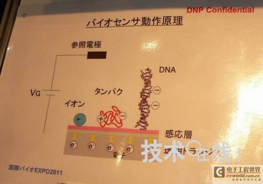 大日本印刷(DNP)在2011年6月29日~7月1日于東京有明國際會展中心舉行的“國際生物學EXPO”上,參考展出了利用顯示器TFT技術的“透明生物傳感器”。這是一款旨在檢測細胞有無呼吸的傳感器。特點是可以同時兼顧利用TFT進行的電氣特性評測以及利用“透明”特性進行的顯微鏡觀察。