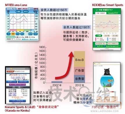 “終于有了成功的范例!”日本調(diào)查公司Seed Planning的荒川信行指的是日本MTI公司提供的Luna-Luna和KDDI公司提供的au Smart Sports服務(wù)(圖1)。兩者都是利用手機(jī),每月收費(fèi)數(shù)百日元的保健服務(wù),利用人數(shù)現(xiàn)在都超過(guò)了150萬(wàn)人(注1)。