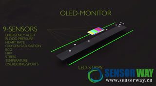 Vidameter配置了9個傳感器,可以追蹤緊急情況、血壓、心率、血氧飽和度、ECG(心電圖)、HRV(心率變異性)、壓力、體溫和過度疲勞的信號。Vidameter結合所有傳感器的數據并提供即時的提醒,例如你跑得過快增加了心臟的壓力或者你太累了不能開車回家。