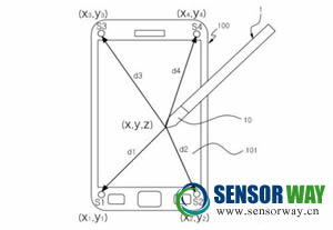 據(jù)專利文件顯示,三個超聲波傳感器可以識別二維的數(shù)據(jù),而4個超聲波傳感器則能夠識別三維的數(shù)據(jù)。