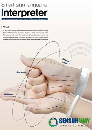 據(jù)報(bào)道,韓國(guó)3名設(shè)計(jì)師構(gòu)思了一款能解讀手語的翻譯手環(huán),把它套在手腕即可將手語轉(zhuǎn)換成語音,這將有助打破聾啞人士與正常人的溝通障礙。據(jù)報(bào)道,這只名為“Smart Sign Language Interpreter”的手語翻譯手環(huán),內(nèi)置距離傳感器,陀螺儀傳感器,肌電傳感器等。由設(shè)計(jì)師師Jeon Sung-Su、Ku Ja-Yun及Lee Seo-Yong共同設(shè)計(jì),并獲德國(guó)著名的紅點(diǎn)設(shè)計(jì)大獎(jiǎng)概念設(shè)計(jì)獎(jiǎng)。