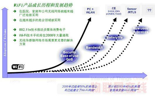 將Wi-Fi用于WSN網(wǎng)絡(luò),確實(shí)是個(gè)不錯(cuò)的主意。因?yàn)樗軌蛳硎艿秸诒淮笠?guī)模部署的Wi-Fi網(wǎng)絡(luò)所帶來(lái)的成熟的技術(shù)、各種層出不窮的Wi-Fi設(shè)備、既有的網(wǎng)絡(luò)設(shè)施、架構(gòu)支持、豐富的網(wǎng)絡(luò)知識(shí),另外還有快速安裝和減少了學(xué)習(xí)周期和與其他協(xié)議互操作而帶來(lái)的各種麻煩,加快開(kāi)發(fā)周期。