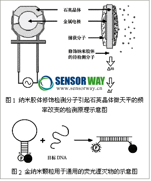 關(guān)于納米顆粒的研究很多,例如將功能性納米顆粒(如電子性質(zhì)的、光學(xué)性質(zhì)的和磁性的)固定在生物大分子(如多肽、蛋白、核酸)上,可制成用于生物信號檢測、信號轉(zhuǎn)換和放大的傳感器,其可分為聲波、光學(xué)、磁性和電化學(xué)等種類。