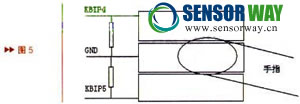 鍵盤(pán)電路十分簡(jiǎn)單,端口到地接2M電阻即可,觸摸鍵盤(pán)的PCB設(shè)計(jì)要兼顧三鍵判斷,故采用如圖5設(shè)計(jì)。
