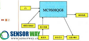 基于MMA7260QT加速度傳感器的自動(dòng)搖籃控制系統(tǒng)結(jié)構(gòu)如圖2。
