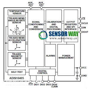 圖 4:Analog Devices 的 ADIS16405 iSensor 的框圖。