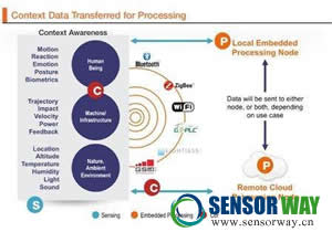 在物聯(lián)網(wǎng)中,在傳感節(jié)點(diǎn)采集了輸入后,嵌入式處理節(jié)點(diǎn)對(duì)情境感知數(shù)據(jù)進(jìn)行處理,然后提供反饋并立即采取行動(dòng),或者繼續(xù)傳遞數(shù)據(jù)以便進(jìn)行基于云/網(wǎng)絡(luò)的處理。在后一種情況下,需要各種連接機(jī)制才能把數(shù)據(jù)傳遞到核心網(wǎng)。例如,在這種情況下,手機(jī)或連接的平板電腦就會(huì)變成網(wǎng)關(guān),連接到廣域網(wǎng)(WAN)。