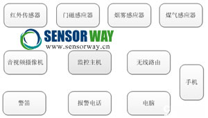 家庭監(jiān)控系統(tǒng)是一個小型的多傳感器視頻集成監(jiān)控系統(tǒng)。該系統(tǒng)利用網(wǎng)絡(luò)技術(shù)將安裝在家內(nèi)的視頻、音頻、報警器、等監(jiān)控設(shè)備和傳感器連接起來,通過中控電腦或設(shè)備的處理將有用信息存儲、傳輸和處理,實現(xiàn)對家庭安全的全方位監(jiān)控。典型的家庭監(jiān)控系統(tǒng)構(gòu)成如下: