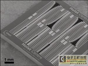 升級(jí)當(dāng)前的技術(shù)(如,化學(xué)電阻或石英水晶)需要很大功率。而IMEC和霍爾斯特中心共同開發(fā)的微橋式壓差傳感器可以被嵌入在高密度排列的各個(gè)壓電電機(jī)中。該設(shè)計(jì)采用噴墨印刷技術(shù)將一系列吸收劑迅速地涂在各個(gè)微橋式壓差傳感器上。懸吊式結(jié)構(gòu)在振蕩過程中發(fā)生振動(dòng)和變化,這一現(xiàn)象被監(jiān)測(cè)用作被測(cè)氣體已經(jīng)被吸收的跡象。因?yàn)檫@一結(jié)構(gòu)具有較高的長度-厚度比,所以要求被檢測(cè)的氣體為低濃度氣體。完整的傳感器芯片尺寸為9 × 9毫米,由160個(gè)分立式可尋址的微型機(jī)電諧振器組成,其縱橫比(長度/厚度)范圍在140~1500。